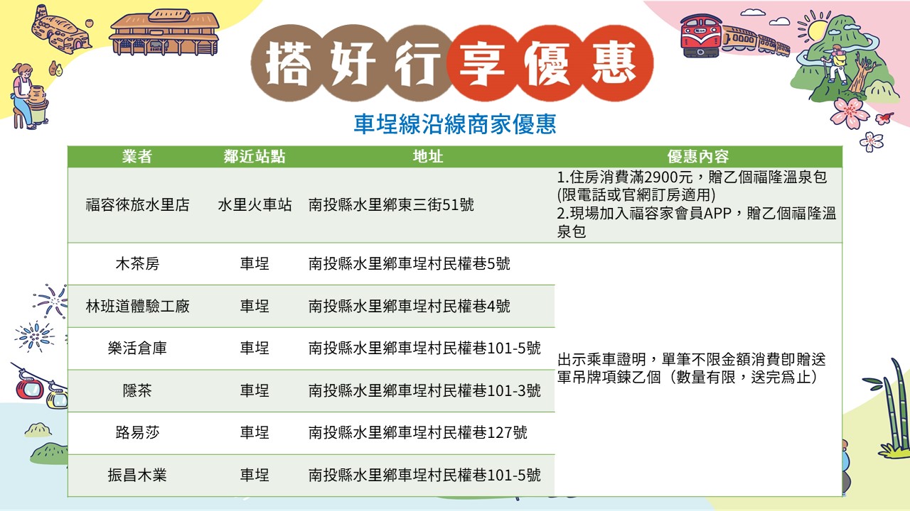 優惠2:【搭好行享優惠活動】持乘車證明至合作商家消費即享專屬優惠