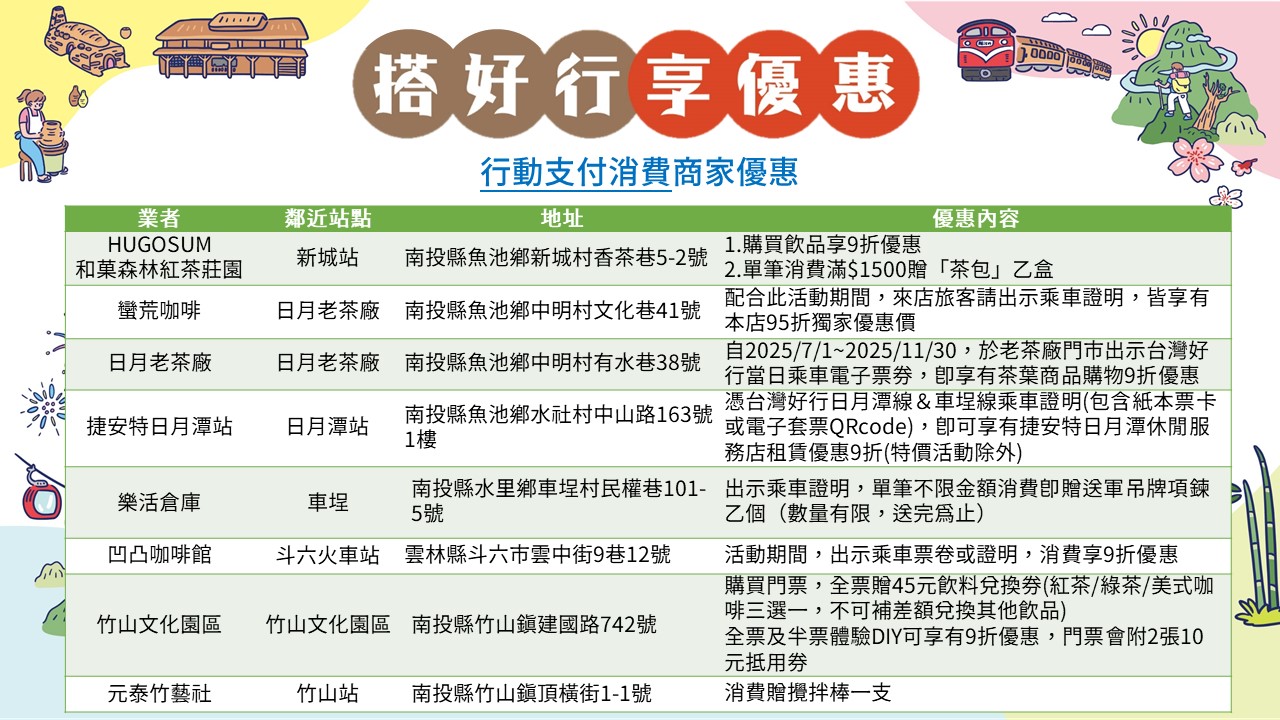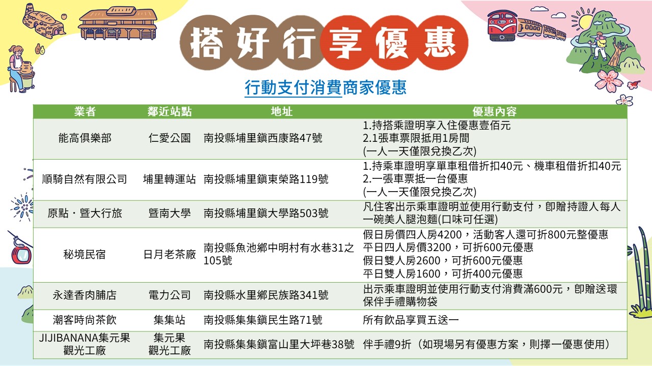 *實際優惠內容以合作業者現場公告為主(沿線商家優惠及行動支付優惠二擇一,優惠不得重複領取)